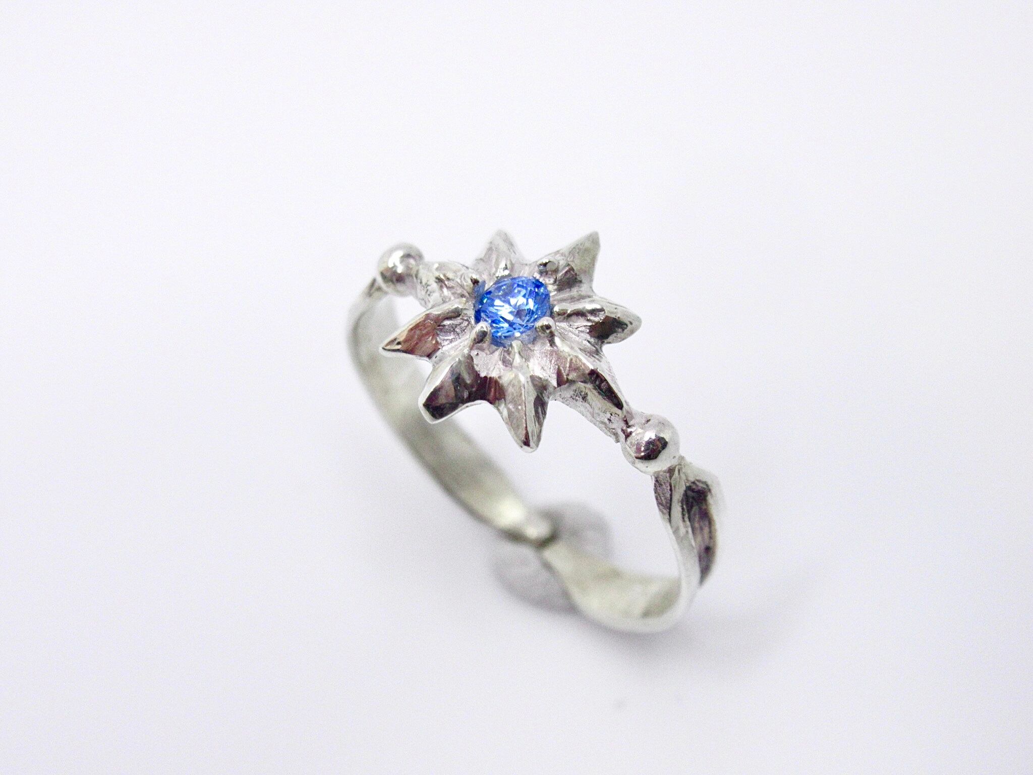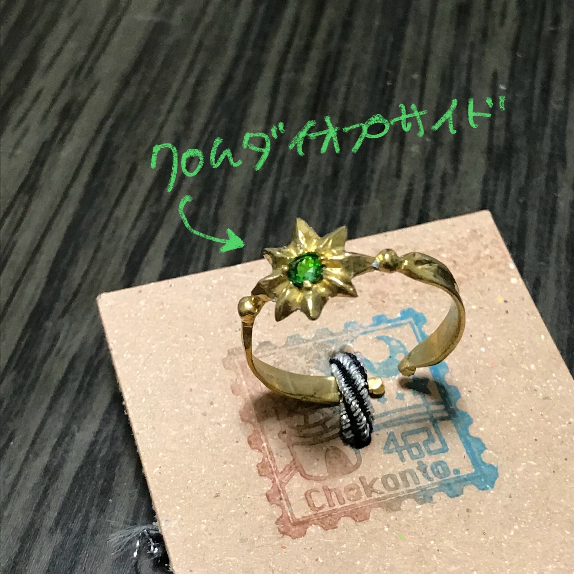 八芒星の中央にお好きなカラーのキラキラ留めたリング