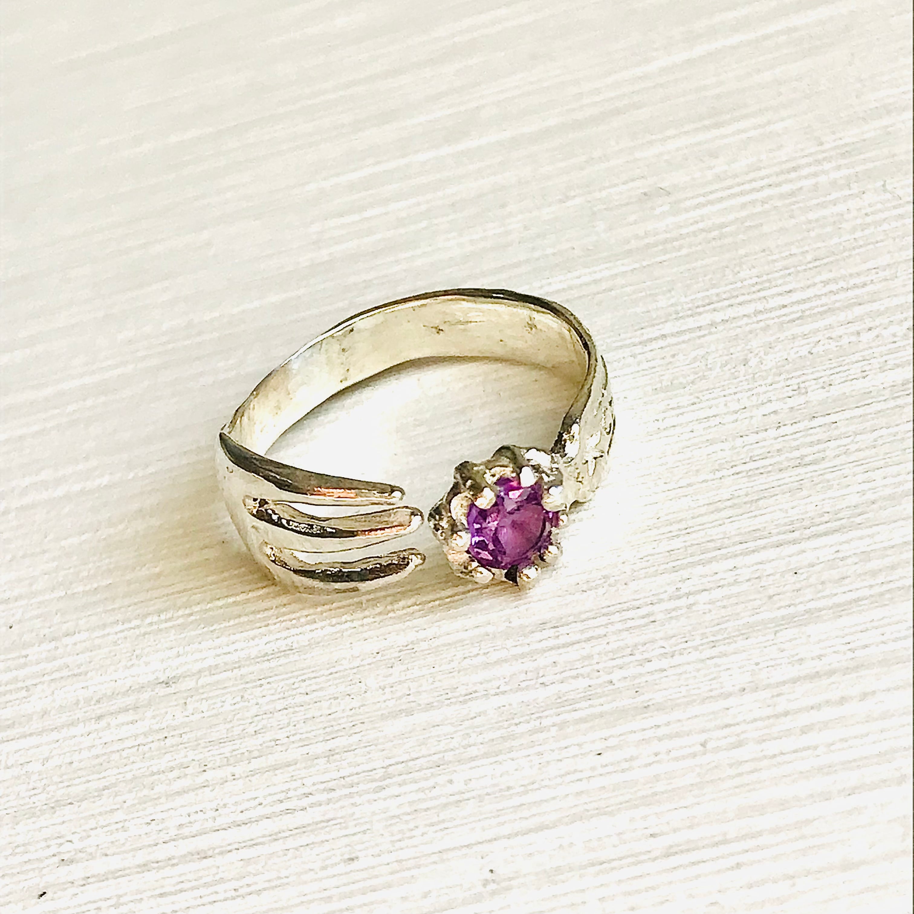 天然石とフォークのリング